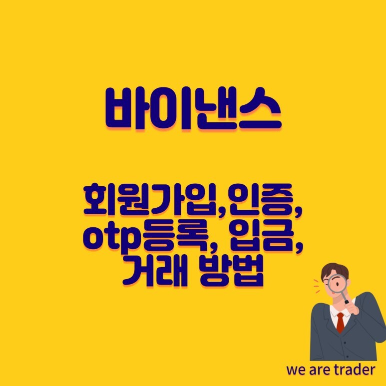 안녕하세요 we are trader입니다. 오늘은 세계1위 거래소인 바이낸스 거래소의 가입방법 및 입출금 방법에 대해 포스팅 하려고 합니다. 목차 1. 바이낸스 가입 방법 2. 바이낸스 구글 OTP 설정 방법 3. 바이낸스 KYC 인증 방법 4. 바이낸스 입출금 방법 1. 바이낸스 가입 방법 Welcome to Binance! Sign up with phone or email or Continue with Apple Continue with Google Already registered? Log In Sign up for an entity account Buy Crypto in Minutes Enjoy the world’s largest cryptocurrency exch..